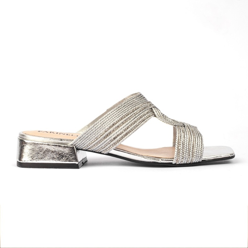 Sandalia. Material cuero vacuno metalizado. Altura de taco 2.5cm
