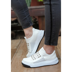 ZAPATILLA PU CUERO ECOLOGICO BLANCO ELASTICO TACHAS