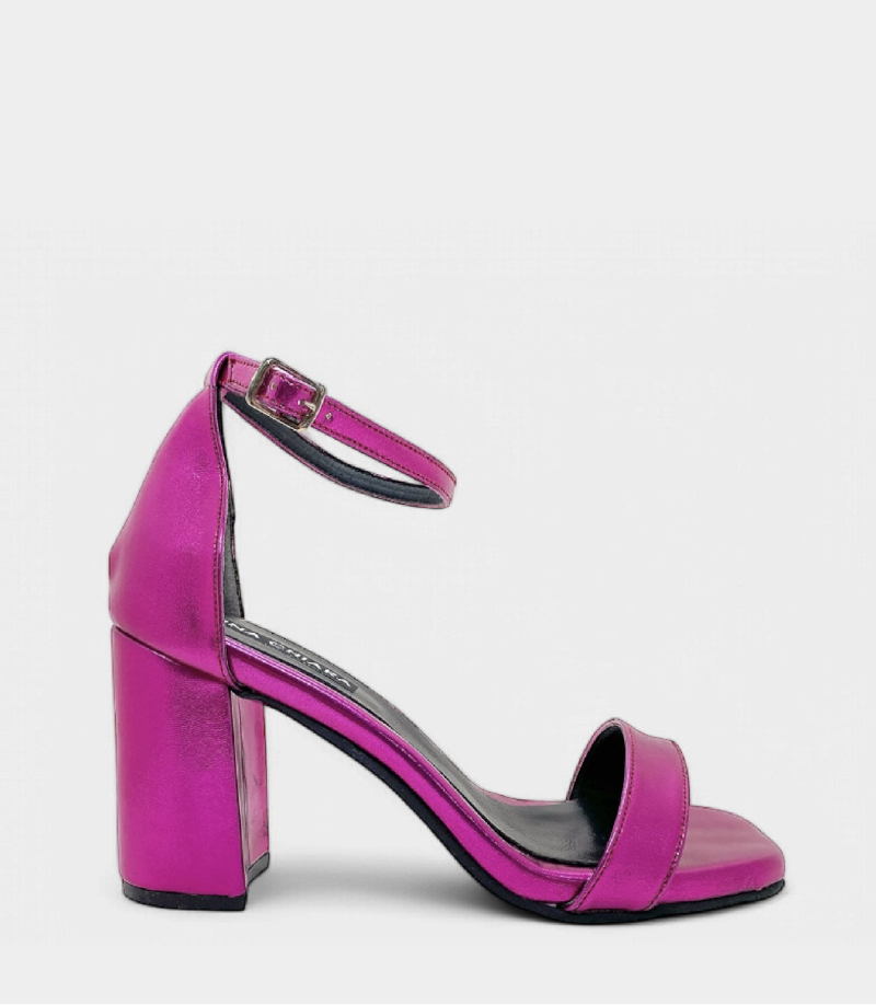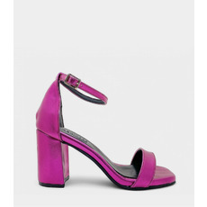 Diseño: Confeccionada en un material metalizado fucsia de alta calidad. Cuenta con una faja frontal de punta cuadrada (tendencia de temporada) y una delicada tira con hebilla lateral.