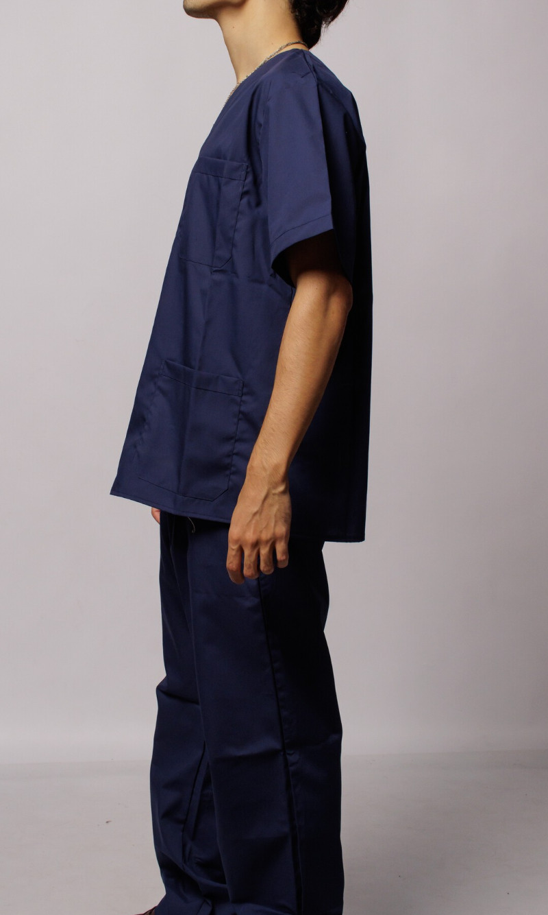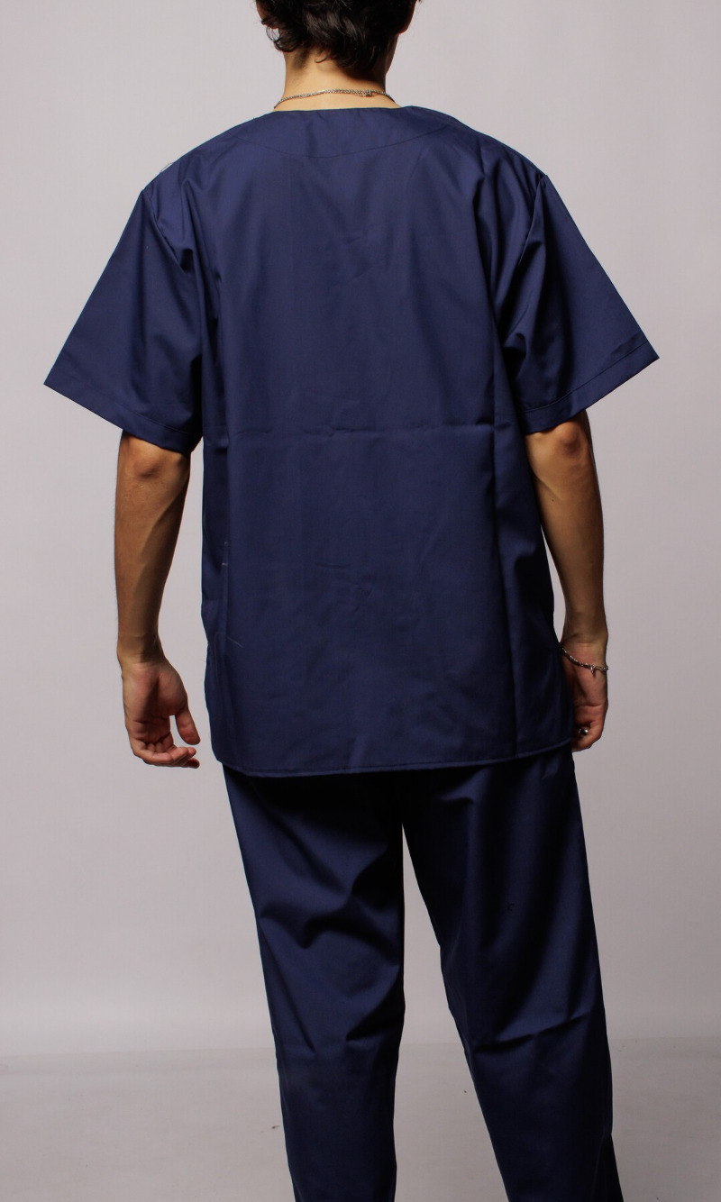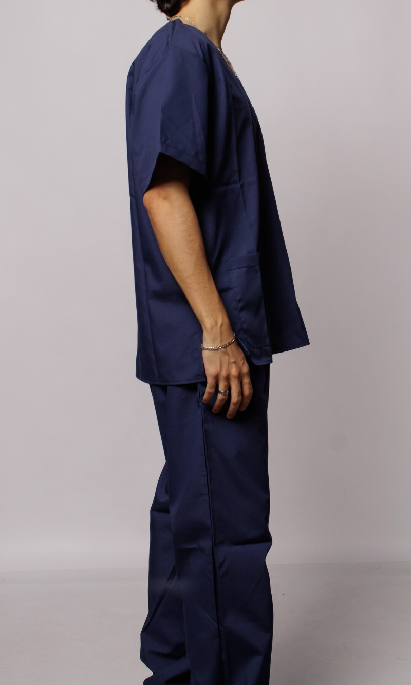 Conjunto unisex clsico con escote en V, confeccionado en tela Arciel, perfecta para quienes buscan movilidad y comodidad. Disponible en varios colores, la chaqueta cuenta con dos bolsillos inferiores y uno en el pecho. El pantaln, de estilo nutico, tiene cintura elastizada y tres bolsillos: dos delanteros y uno trasero.