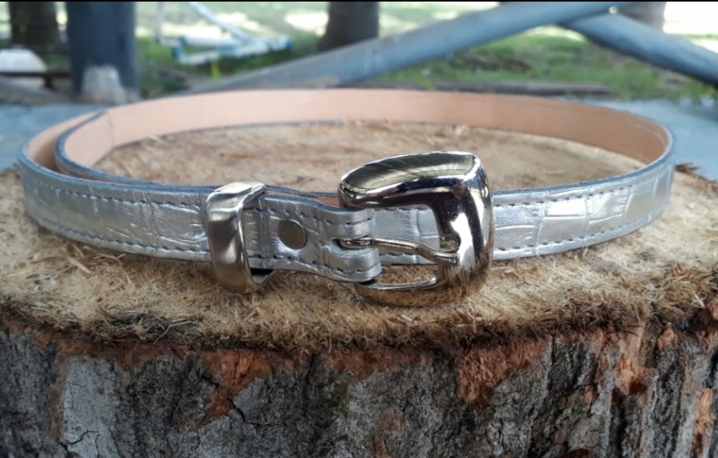 Cinto en cuero vacuno, forrado en cuero vacuno - Hebilla en color nickel -. Largo 113cm (sin hebilla) - Ancho 2 cm