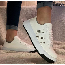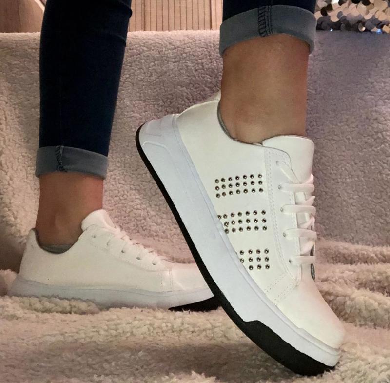 ZAPATILLA PU CUERO ECO CORDON TACHAS BLANCO