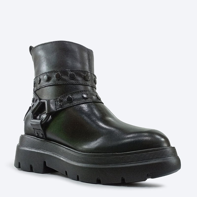 CAPELLADA DE CUERO CON DETALLES DE HEBILLA Y REMACHES METALICOS