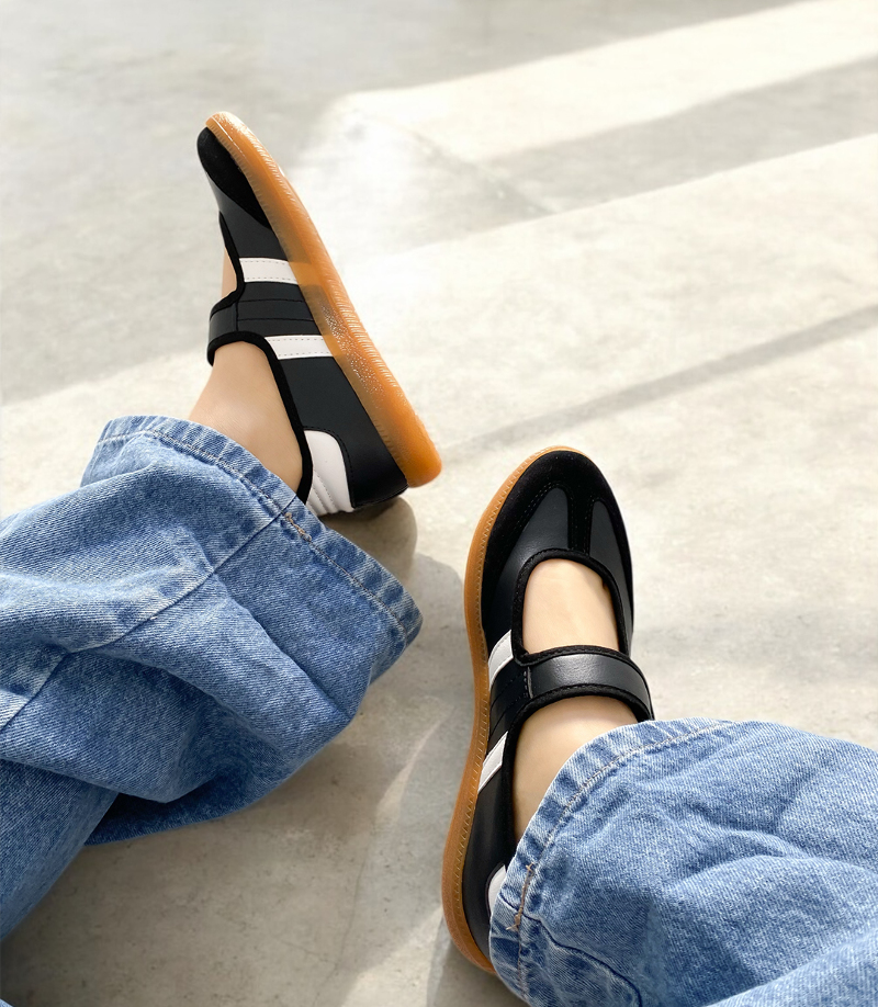 Fusión audaz de estilos que combina la delicadeza clásica de una ballerina y la energía deportiva. Esta mezcla lo convierte en una pieza versátil, ideal para quienes buscan un calzado que se adapte sin esfuerzo tanto a looks casuales como a outfits más atrevidos.