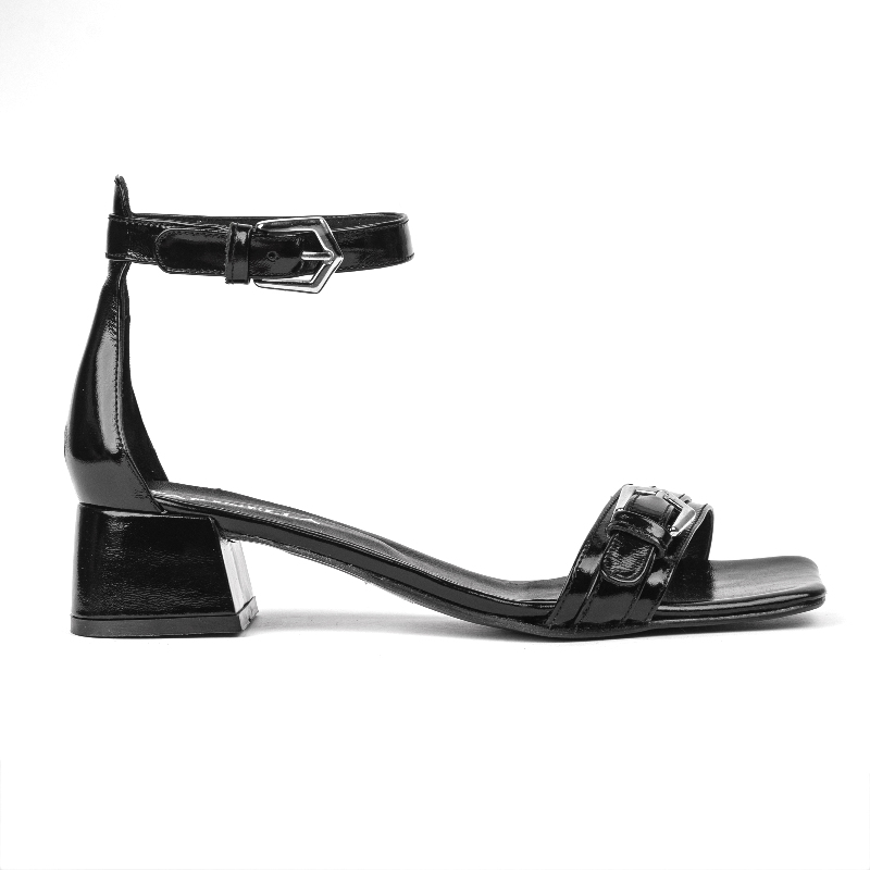 Sandalia. Material cuero vacuno charol. Altura de taco 3.5cm