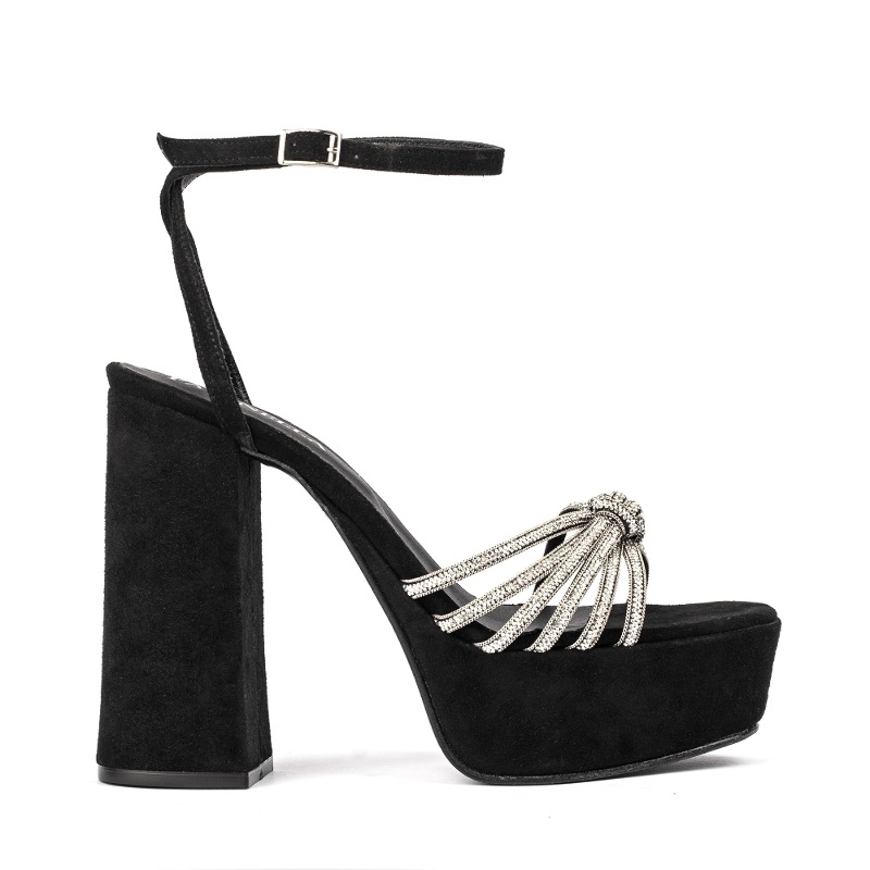 Sandalia. Material cuero vacuno. Altura de taco 11 cm. Altura de plataforma 4 cm.