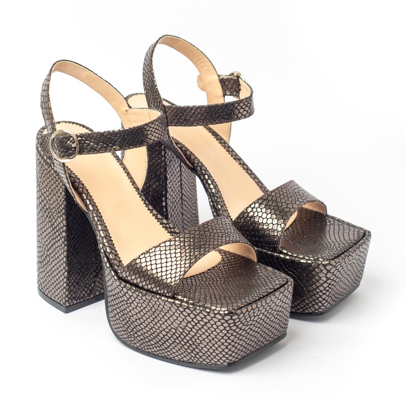 Material: Cuero Sandalia de plataforma clasica con faja glitter.