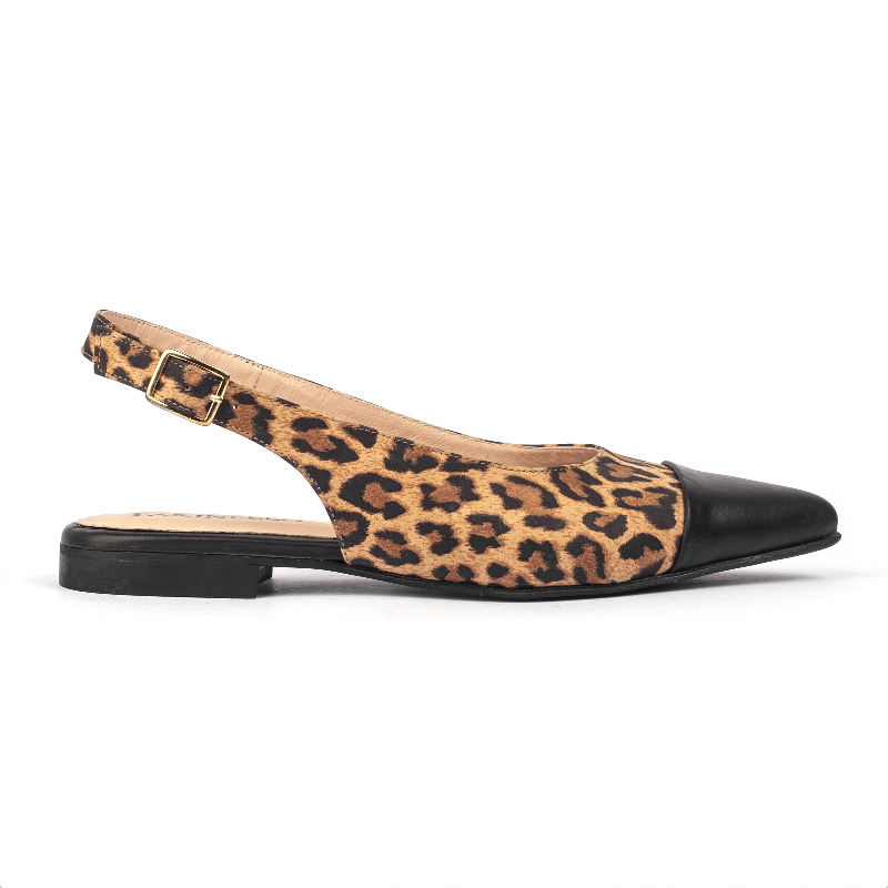 Chatita con puntera combinada. Material Cuero vacuno print. Altura de taco 1.5cm