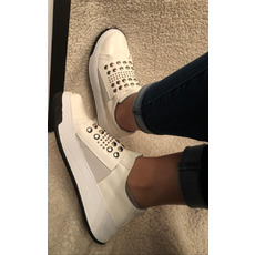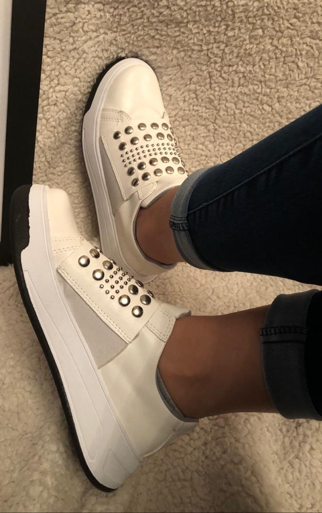 ZAPATILLA PU CUERO ECOLOGICO BLANCO ELASTICO TACHAS