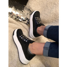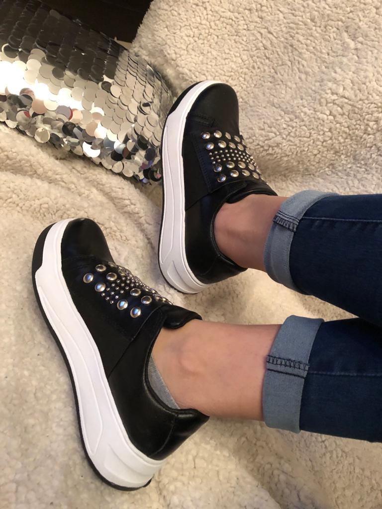 ZAPATILLA PU CUERO ECO TACHAS ELASTICO NEGRO
