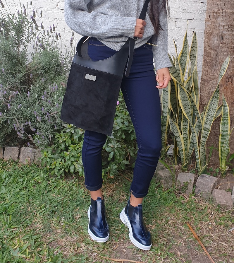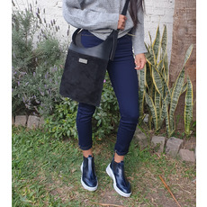 • MORRAL • Material: Gamuza Natural • Temporada: Todo el año • Medidas: 32 cm x 27cm • Color: NEGRO • Descripcion: Morral en gamuza y cuero.- Interior sin gross – bolsillo interno con broche
