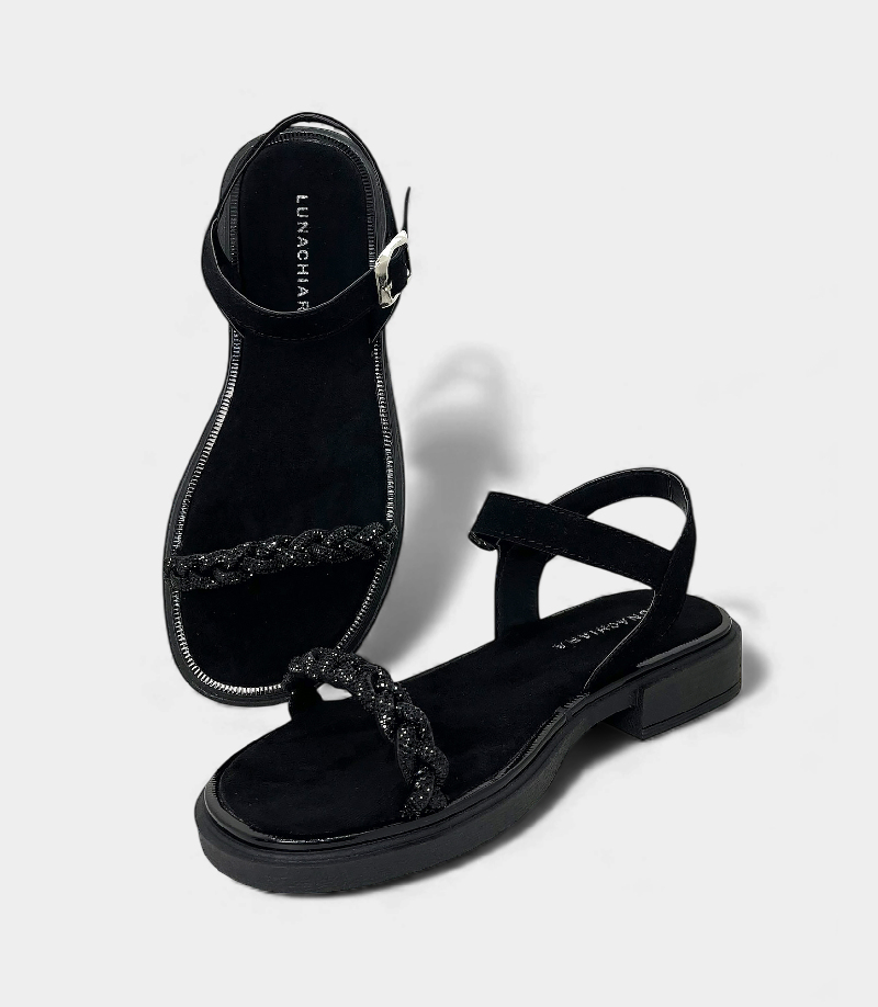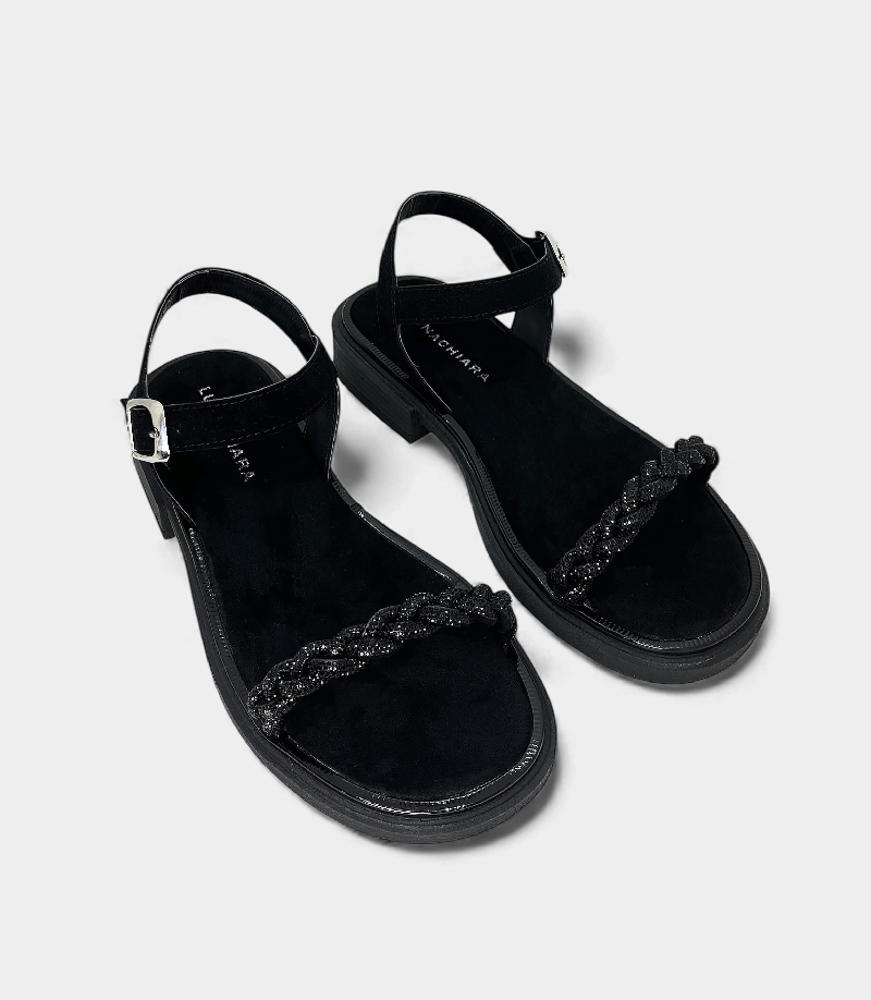 Detalles: Tira frontal cubierta por una trenza de micro-strass negro.