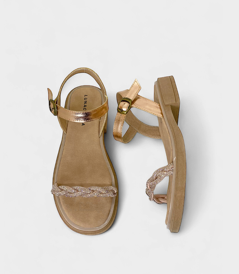 La sandalia Cata es la combinación perfecta entre elegancia y glamour. Con un acabado metalizado tono Oro Rosa, y un diseño minimalista. ¡Un básico brillante que no puede faltar!