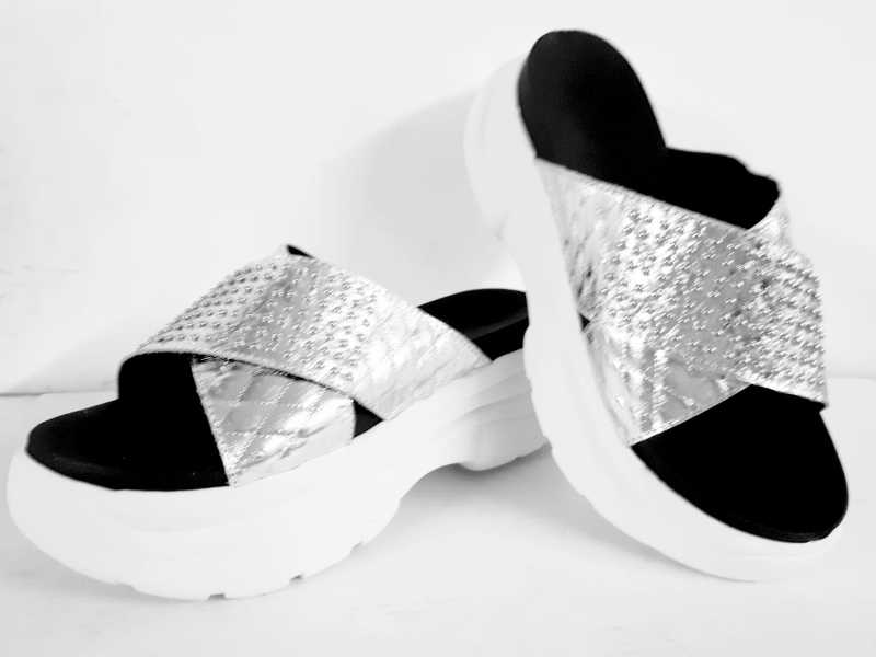 Sandalia en cuero con doble faja matelaceada.- super comodas - Base en eva espanso blanca .- Altura de taco 7cm