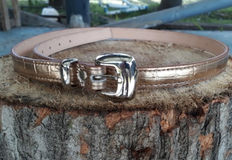 Cinto en cuero vacuno, forrado en cuero vacuno - Hebilla en color nickel -. Largo 113cm  (sin hebilla) - Ancho 2 cm
