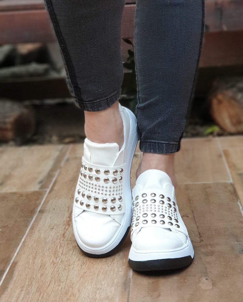 ZAPATILLA PU CUERO ECO BLANCO GINEBRA ELASTICO SANTA FE