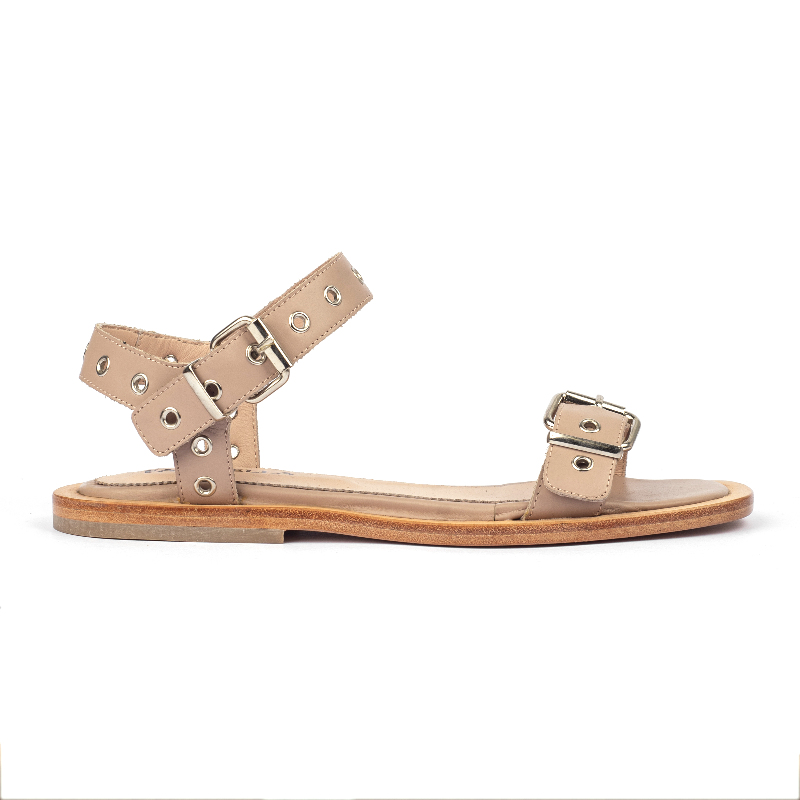 Sandalia Flat. Material cuero vacuno detalle de ojalillosy pulsera regulable.