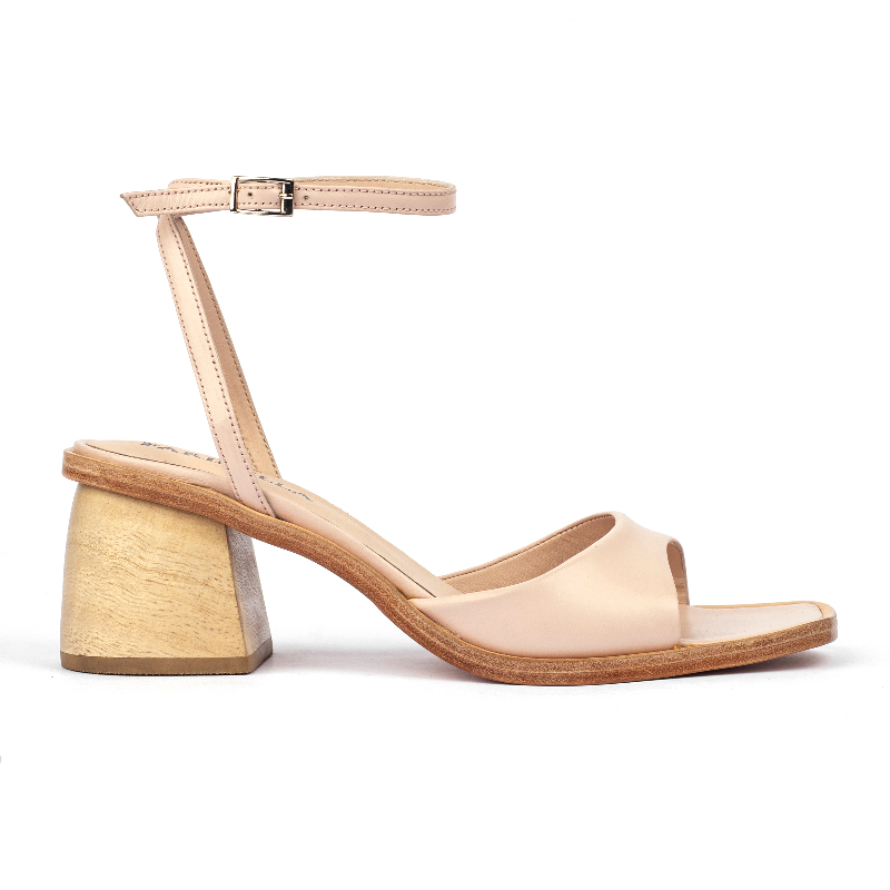 Sandalia. Material cuero vacuno. Taco de madera Kiri y suela Altura de taco 5cm