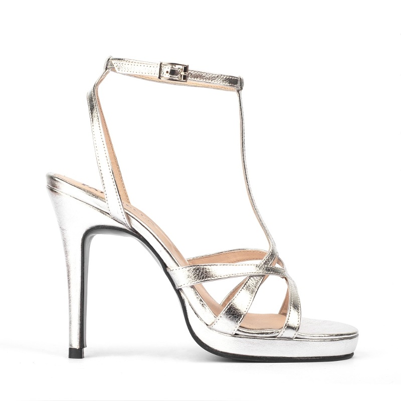 Sandalia. Material cuero vacuno. Altura de taco 10cm Altura de plataforma 1cm.