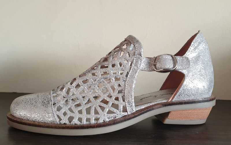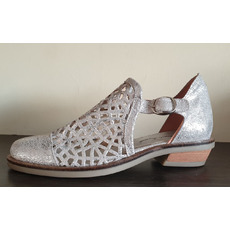 • Sandalia Calada • Base de PVC • Material: Cuero Vacuno • Material interno: Cuero Natural Badana • Temporada: Primavera/Verano • Altura de Base trasera: 1.7cm • Color: PLATA • Caracteristicas: Calzado extremadamente comodo y fresco gracias a su interior en cuero Natural