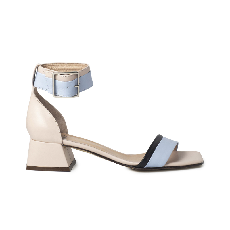 Sandalia. Material cuero vacuno faja y pulsera conbinada. Altura de taco 3,5cm