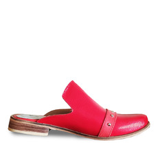 • Sueco Bajo con tira en Tachas Nickel • Base de TR con taco Folia • Material: Cuero • Material interno: Pu • Temporada: Media Estacion / Verano • Altura de Taco: 2.3 cm • Color: Rojo Charol con detalles en tachas