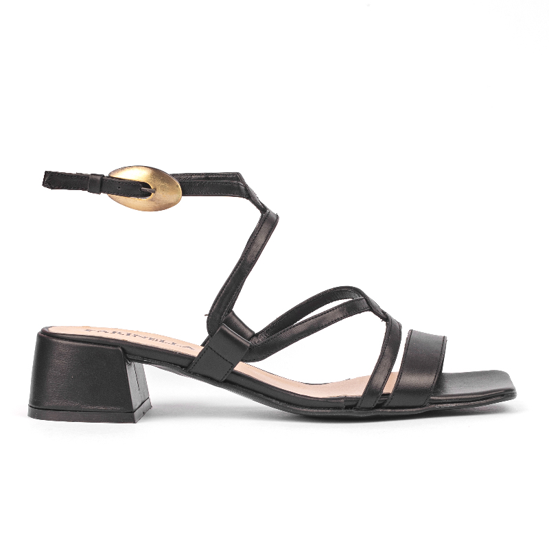 Sandalia. Material cuero vacuno detalle de hebillas ovalada . Altura de taco 3.5cm