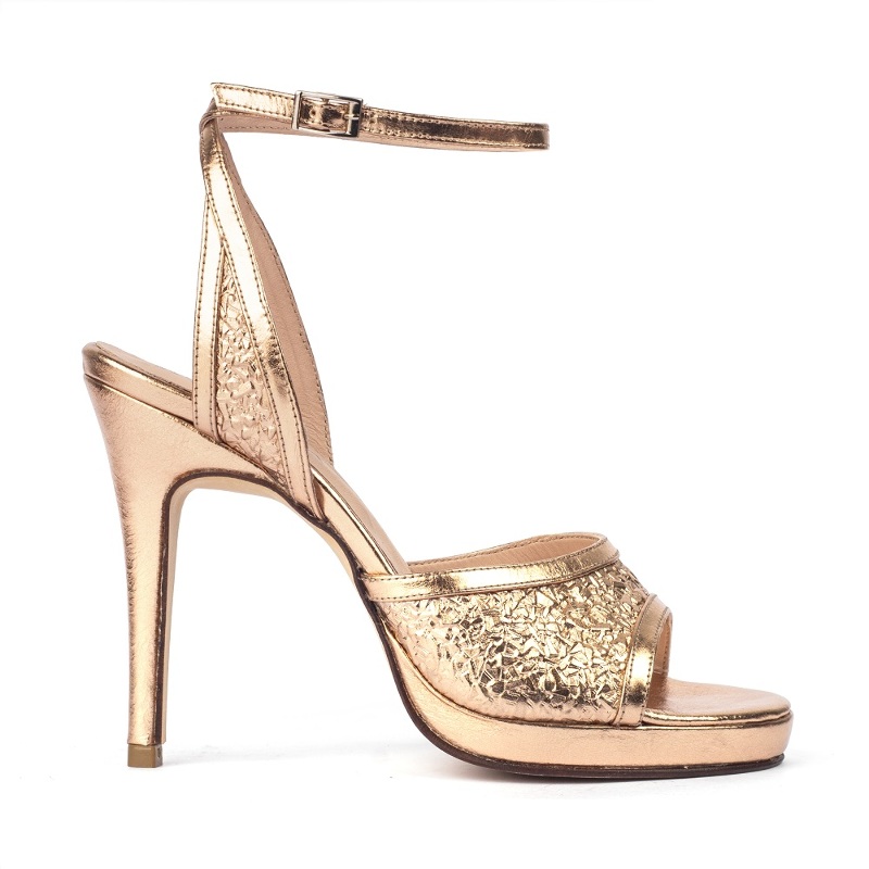 Sandalia. Material cuero vacuno. Altura de taco 10cm Altura de plataforma 1cm.