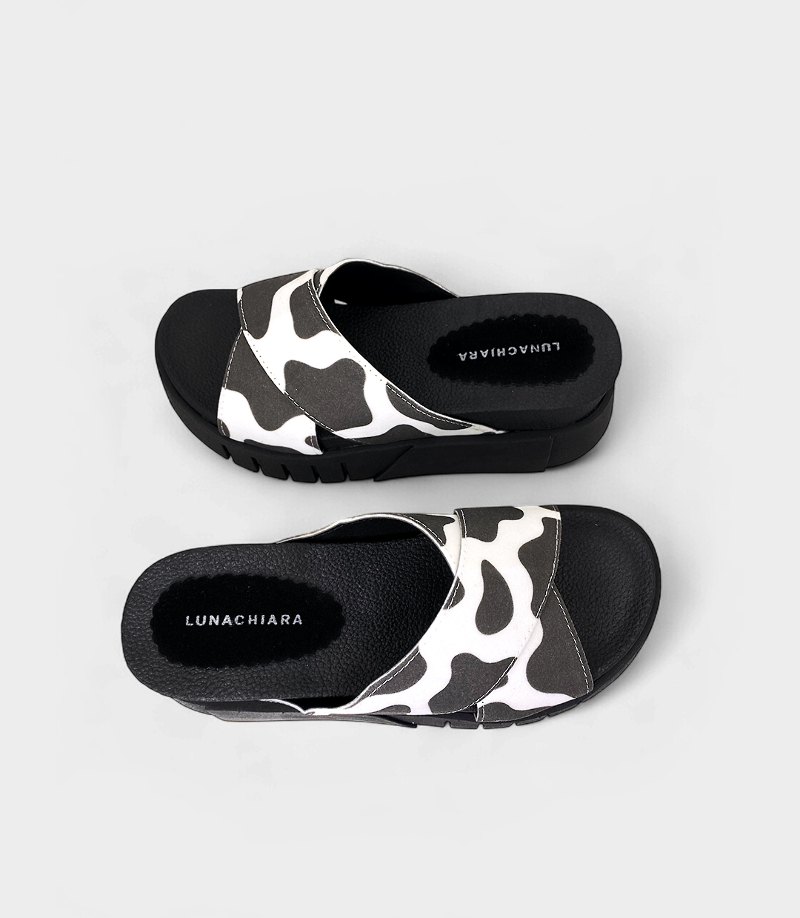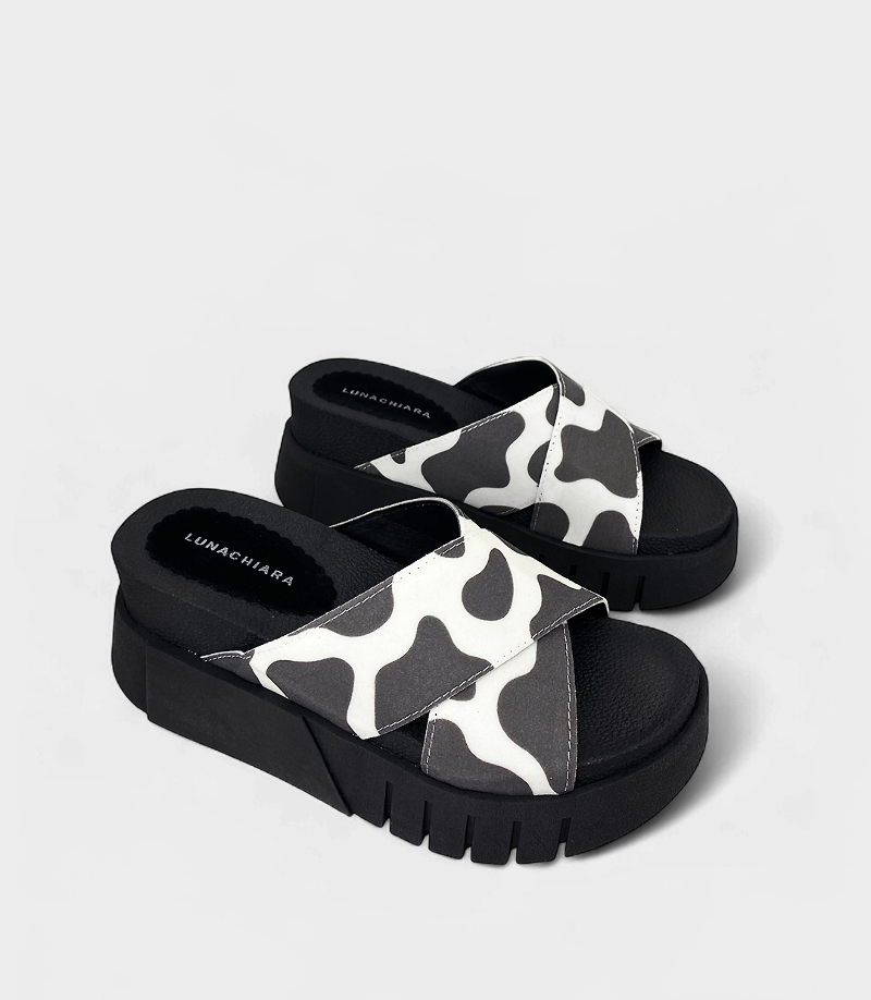Son el toque audaz que necesita tu estilo. Su diseño con estampado animal print de tiras cruzadas y una plataforma negra te aseguran un look cómodo y a la moda.