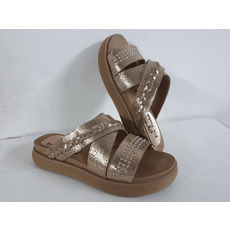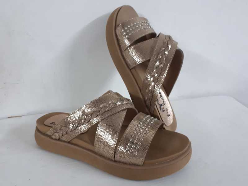 Bellisima, super elegante. Confeccionada en cuero vacuno. Fajas con trenza artesanal y detalles en tachas nickel.- numeros disponibles 35 a 40.- base en Eva Espanso inyectada color camel de 4 cm - Lagrima con logo de la marca en cuero - Bellas!