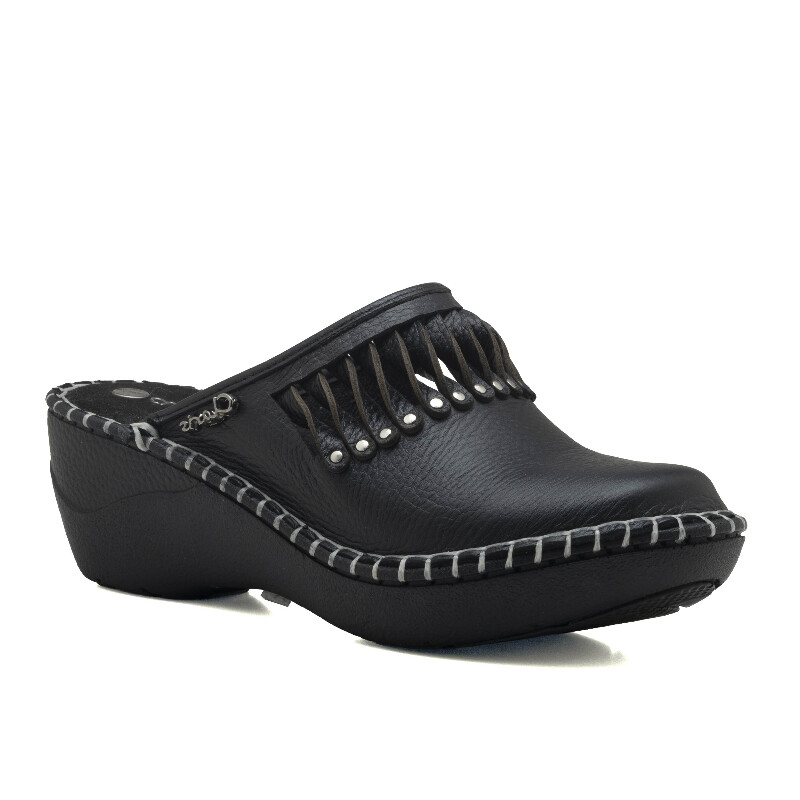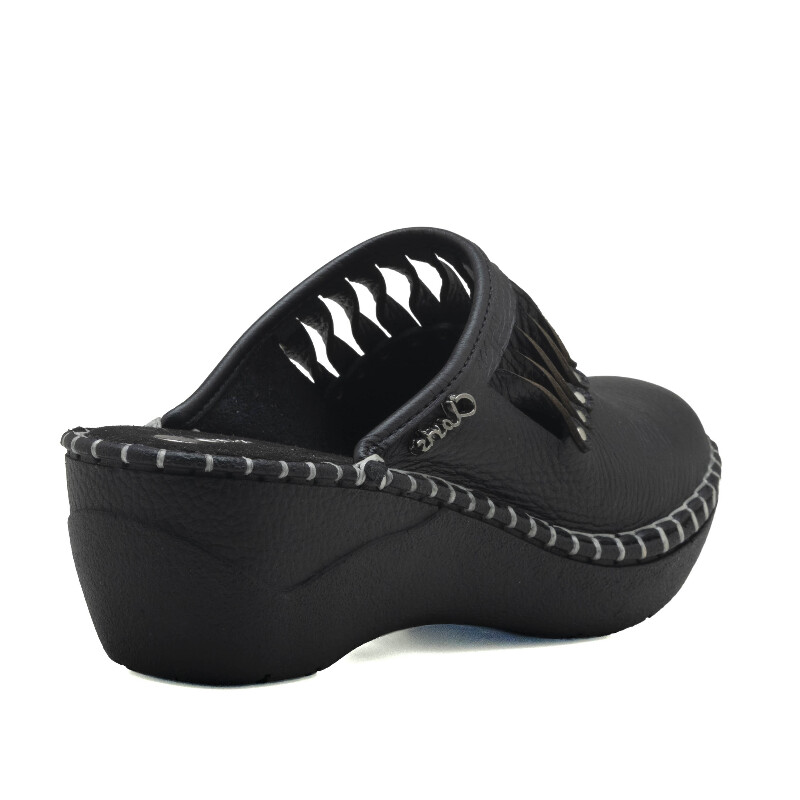 Material: Cuero vacuno de alta calidad. Diseño: zueco Tipo de ajuste: ninguno Plantilla: cómoda y acolchada Base: Una altura de 6 cm aproximadamente. Horma: ancha. Estilo: versatil