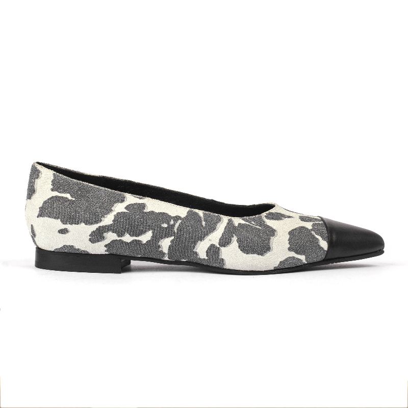 Chatita con puntera combinada. Material Cuero vacuno print. Altura de taco 1.5cm